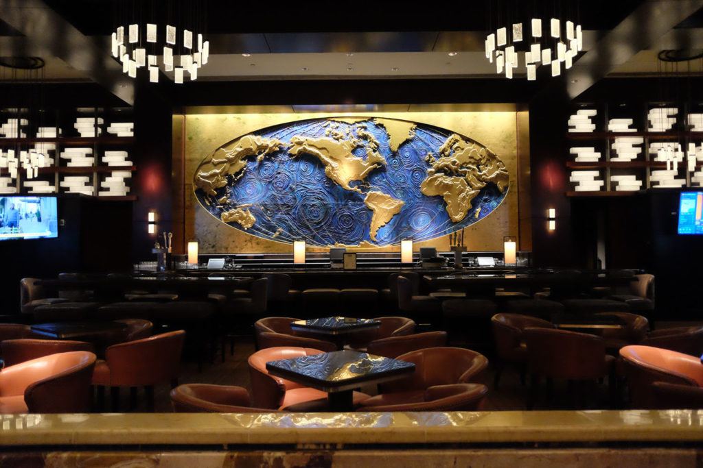 It really provides a striking first impression in particular the visually stunning piece of artwork depicting the world map and the stunning flame art glass chandelier which catches your eye as you enter the hotel.