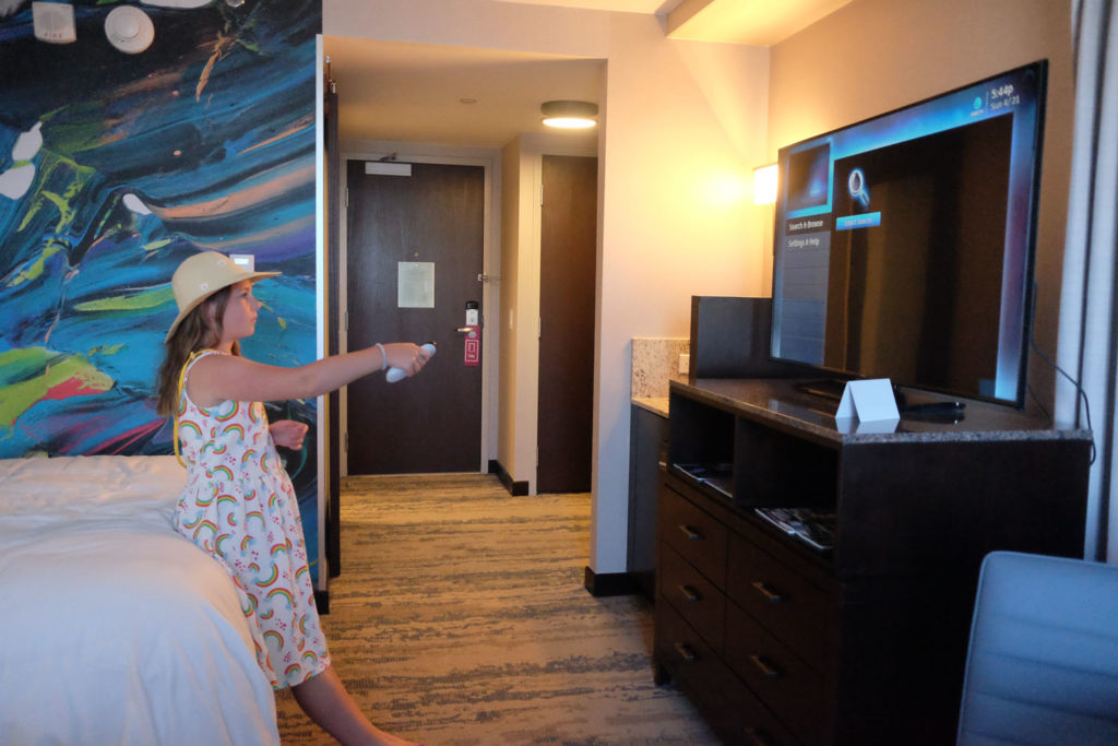 Newly refurbished, I loved the modern, contemporary and stylish feel to the interiors with a slate blue and taupe colour scheme. One element of the rooms that we really liked were the cool “art walls” next to our beds in keeping with the Houston art mural movement and gave the rooms their own personality – I really liked this design feature.