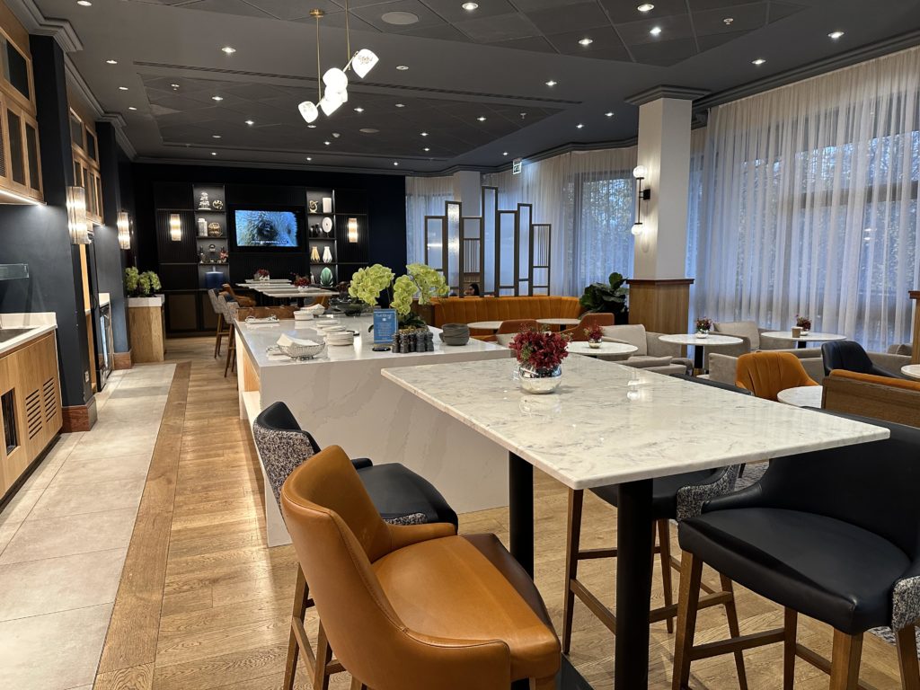 We have been lucky to experience many Hilton executive lounges across the world and this was one of the most tastefully decorated Hilton lounges that we have visited. Decorated in vibrant colours, the lounge featured a subtle gold tone throughout, paying homage to the city’s rich history and production of quality goods, it’s a really impressive space to relax.