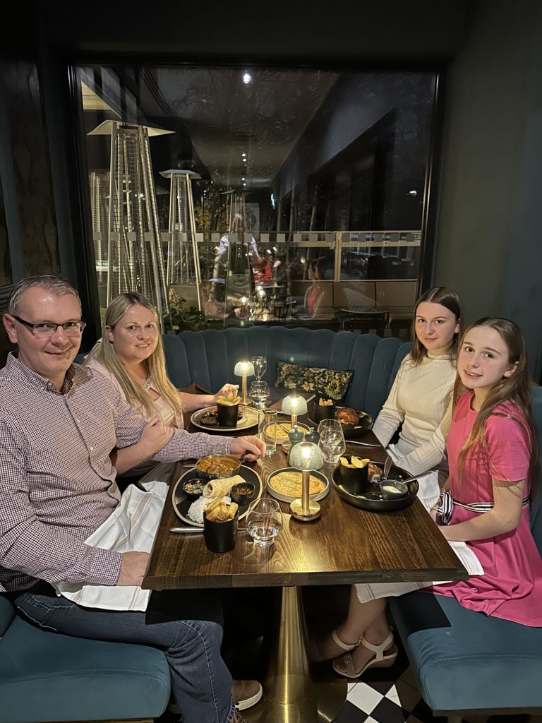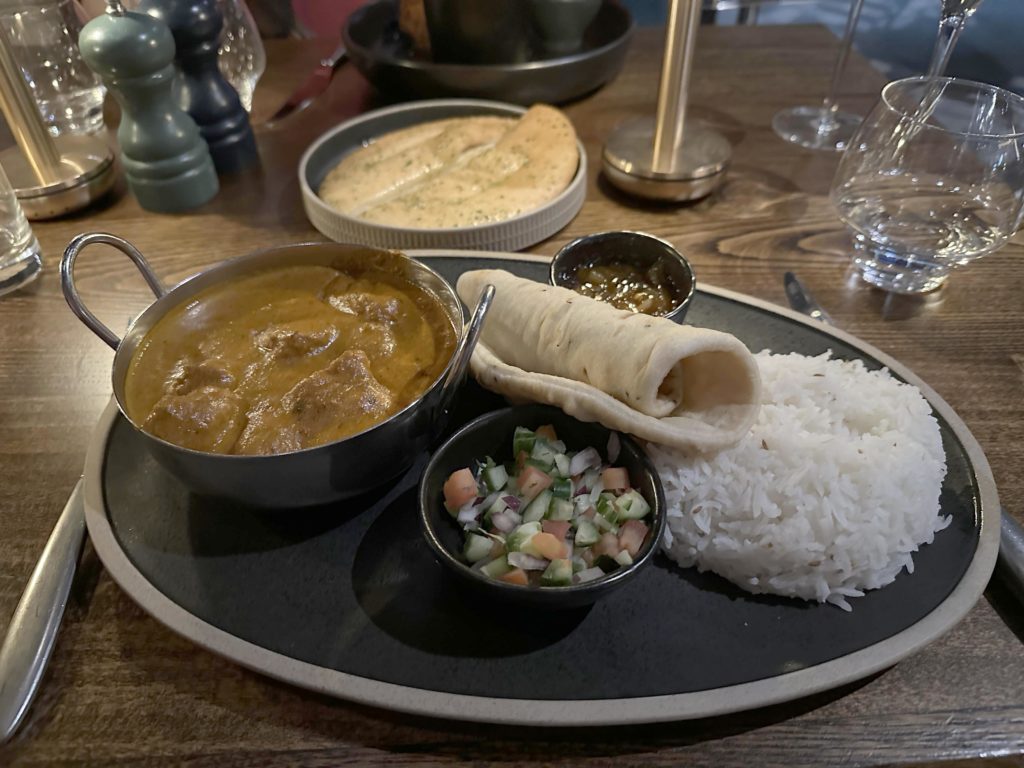 I chose the Flat Iron Steak with triple cooked chips and Chloe and Holly couldn’t resist the beer-battered cod with green pea purée and tartare sauce, served with thick cut triple cooked rosemary chips whilst my husband opted for the Chicken Masala. This was served with house chips, cumin basmati rice, garlic naan bread, raita, mango chutney and poppadums – all of the mains were as good as they looked.
