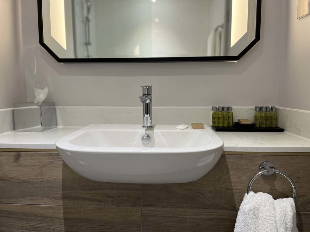 The bathroom, although a little compact for a suite was modern and clean with a large walk-in shower and lots of soft white fluffy towels and plenty of complimentary toiletries.