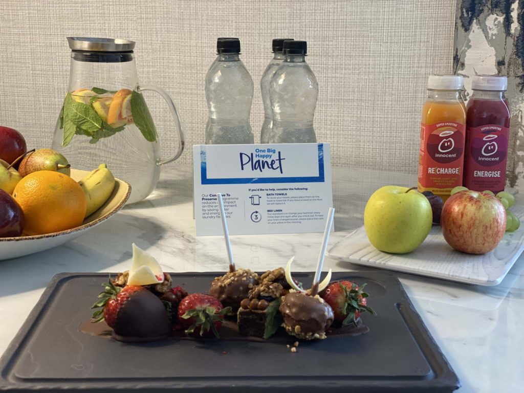 When we arrived in the room there was a bowl of complimentary fresh fruit, chocolates and fruit infused water which was a lovely gesture.