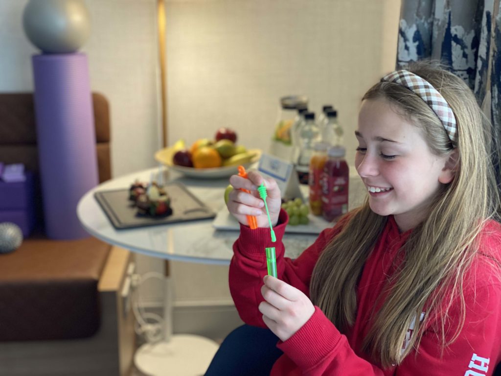 This included yoga equipment which the girls loved, Himalayan salt lamps, essential oil diffusers, lavender pillow mist and bath bombs – according to the Hilton website we should also have received face masks but for some reason these were not in our room.