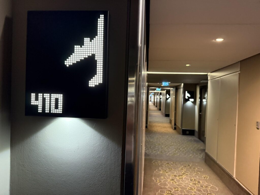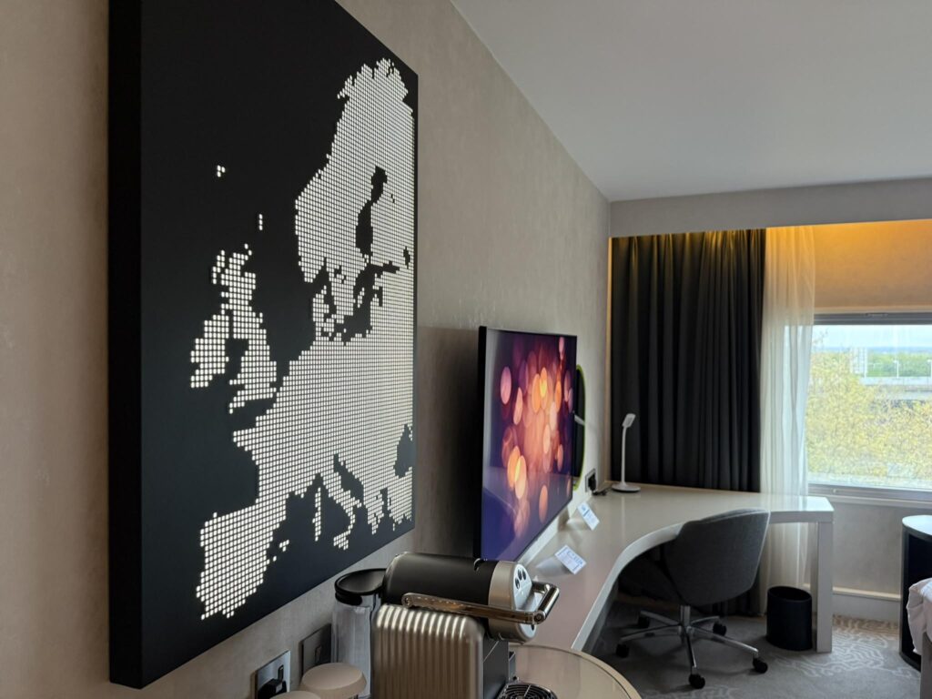 Our rooms had a modern and contemporary design and filled with thoughtful touches.  The illuminated map of Europe on the wall and the dot-matrix-style airport-inspired dot-matrix displays displaying the room numbers are small details, but they add to the airport vibe in a fun and family-friendly way.