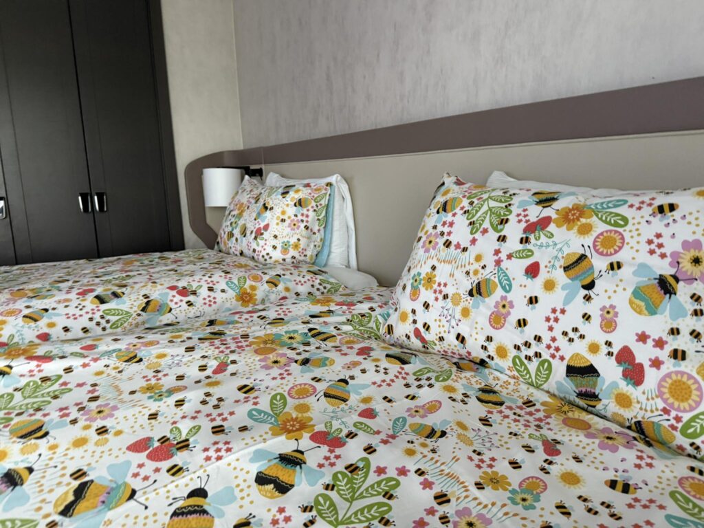 One of our interconnecting rooms was bee-themed, with bee-themed bedding, playful décor and a welcome pack with age-appropriate treats. The girls may be 14 and 16 now, but they still loved their bee themed room which is nothing like they had experienced at any other hotel room.