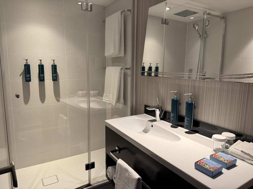 Both of our bathrooms were clean, contemporary, the children’s bathroom had a large walk-in rainfall shower and our interconnecting room had a shower over bath but both had large illuminated mirrors and plenty of counter space.