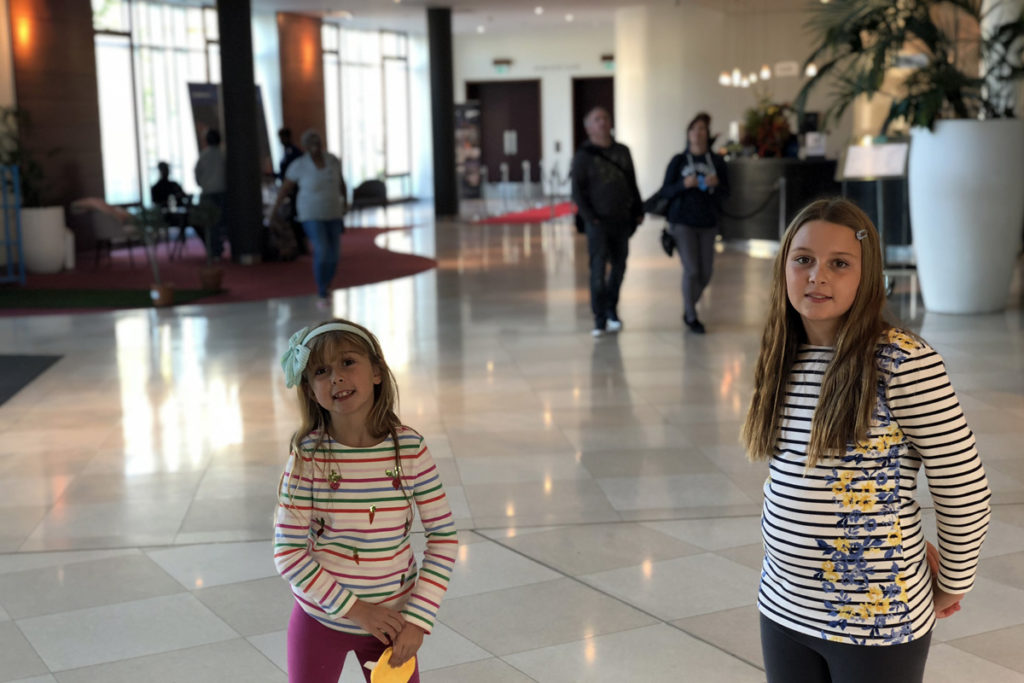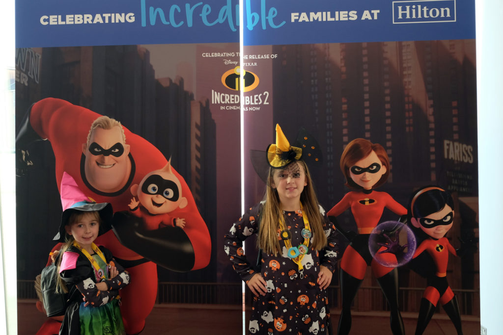 As part of Hilton’s Incredible families promotion where kids stay and eat free the hotel had a large Disney Incredible poster and the girls couldn’t resist a photo in front of it.