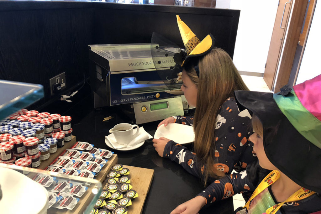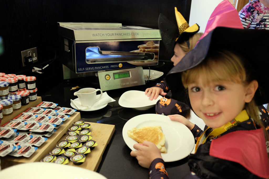Whenever there is a pancake machine at a Hilton hotel the girls love it and set about creating their own masterpieces for breakfast.