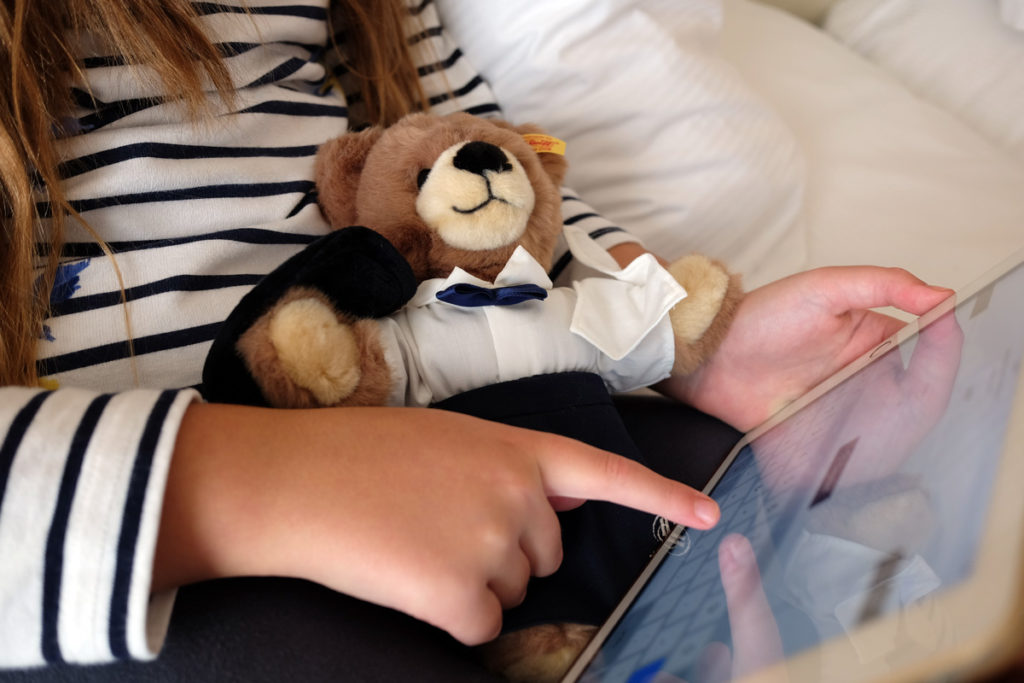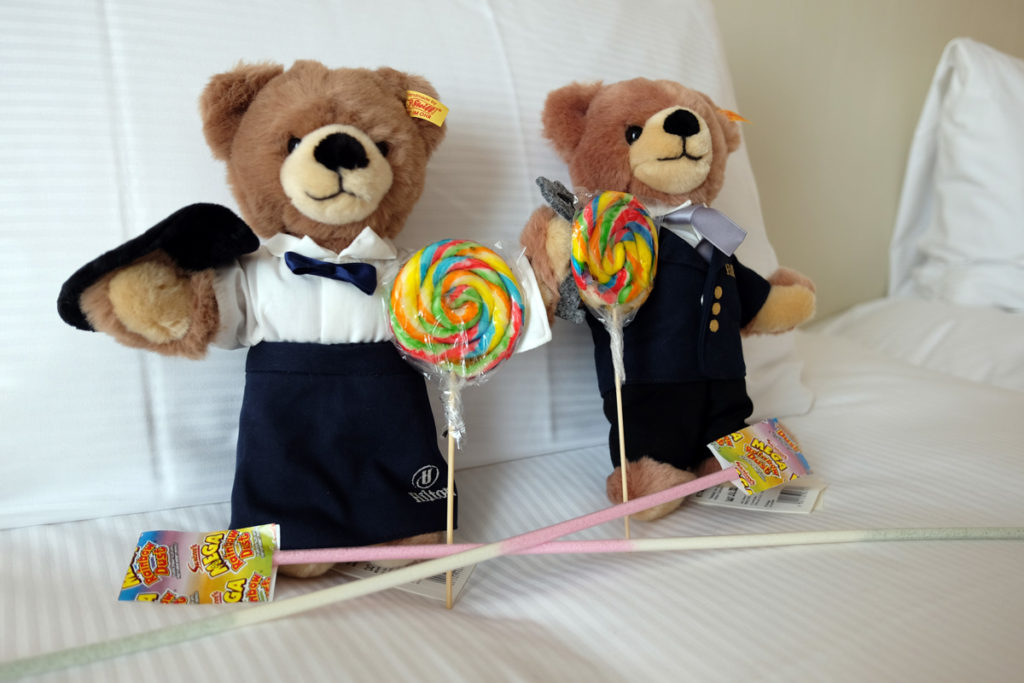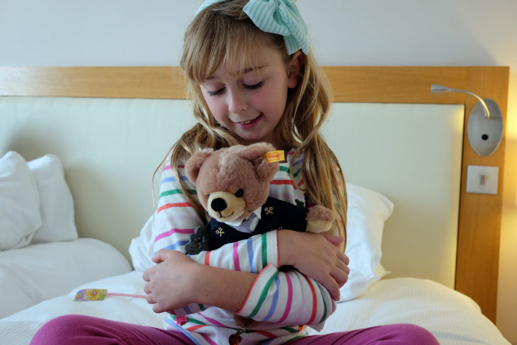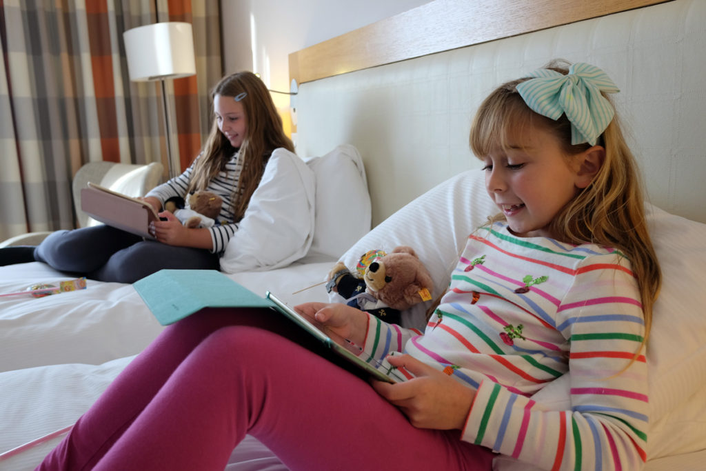 In the girls bedroom they soon made themselves at home by decorating the beds with their new additions to the family their Hilton bears and settled in watching their TV and using the complimentary WiFi for their iPads – a definite pre-requisite when travelling with kids.