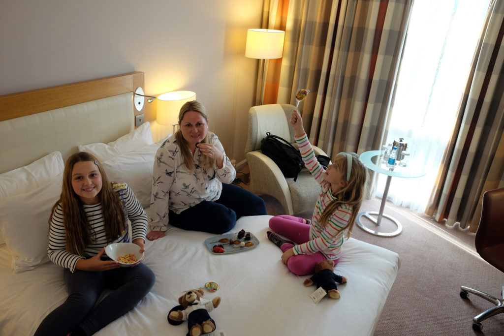 We had a hand written note from the hotel’s management along with chocolate cake and drinks, welcoming us to the hotel. This was a greatly appreciated gesture and what makes the Hilton Reading such a special family hotel.