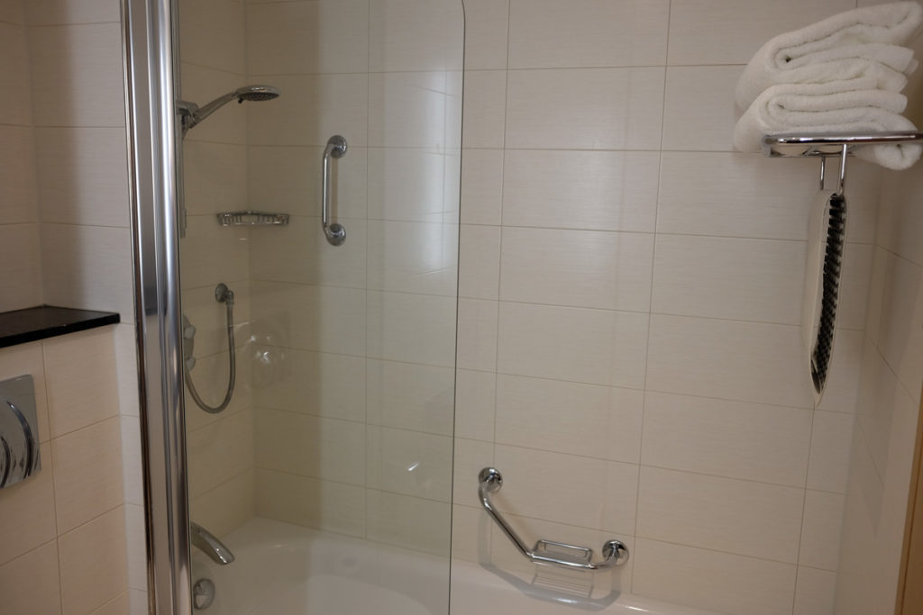 Our rooms contained the facilities you’d expect in this standard of hotel as a Hilton Honors Gold Guest– large flat screen TVs, air conditioning, complimentary high speed WiFi, complimentary still and sparking water, tea and coffee making facilities and a selection of magazines.