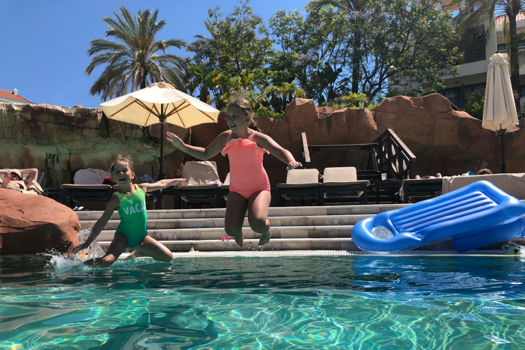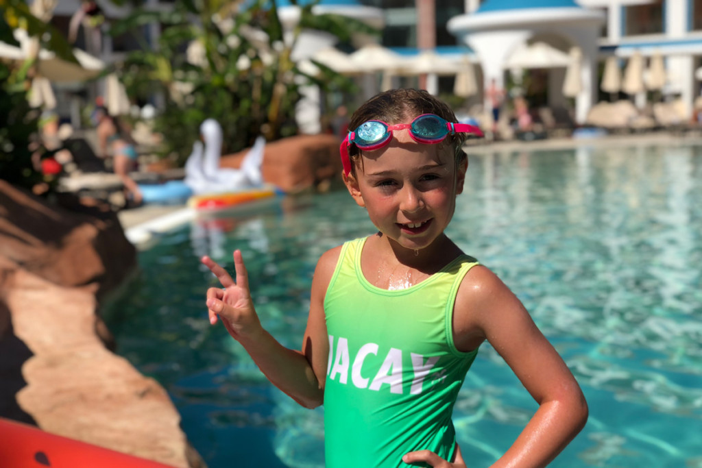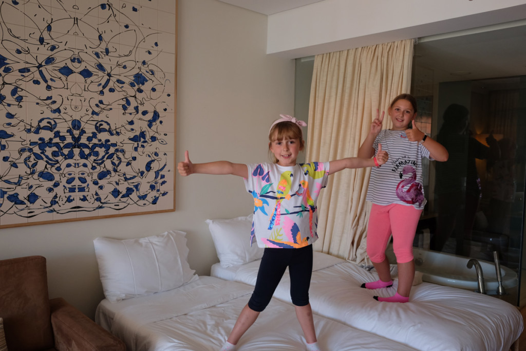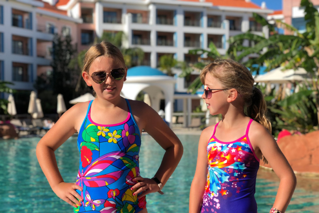 As soon as we got into our room Chloe and Holly couldn’t wait to change into their swimwear and dive straight into the pool to have some fun.