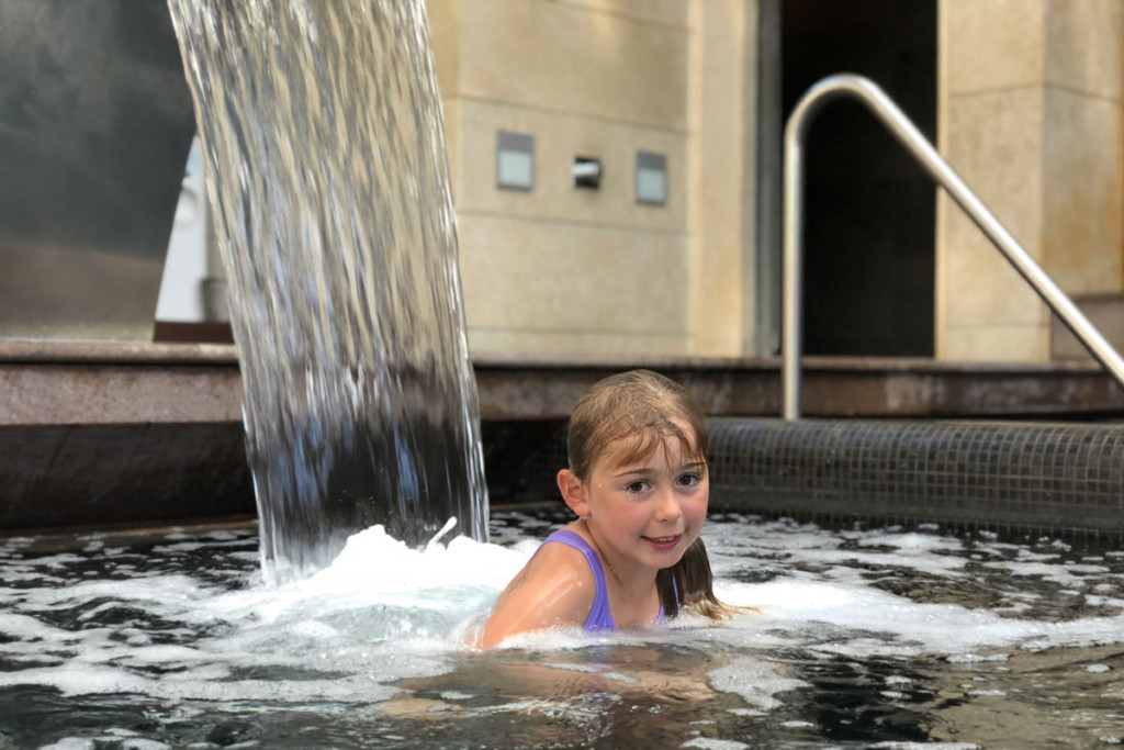 Whilst the girls enjoyed the freezing cold pool for some strange reason (it was literally too cold to dip your toes into) my husband and I enjoyed the other 3 hydro-massage pools especially the jets, bubble beds and a cascading waterfall feature to relax and unwind.