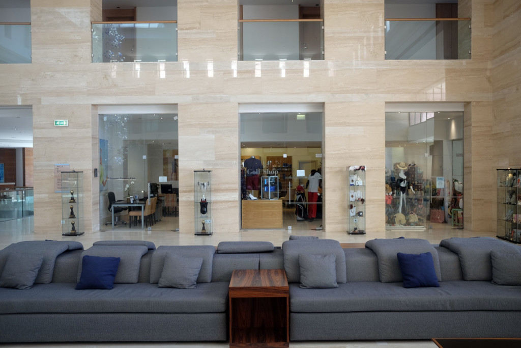 With inviting grey sofas, dark woods and marble floors gave a luxurious, contemporary feel that you would expect from a 5-star hotel and we really liked it.