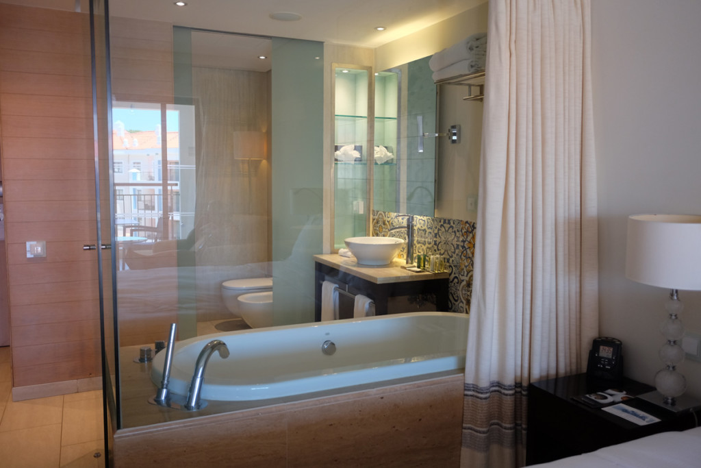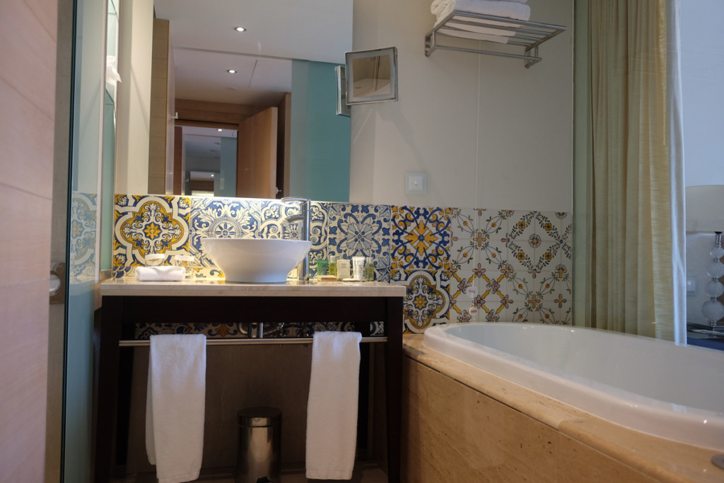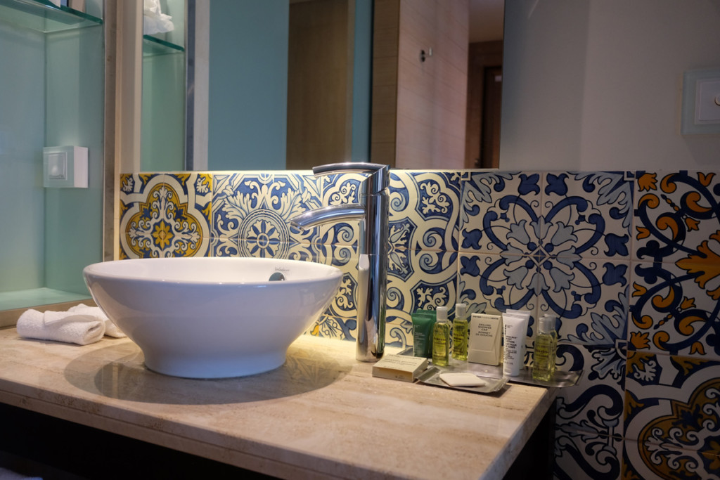 I loved the modern and stylish bathrooms in our suite, which had more Portuguese influences with beautiful azulejos behind the free standing sinks.
