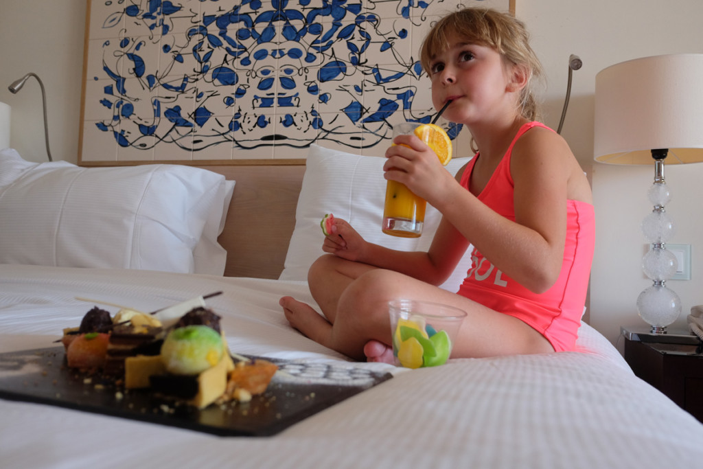 Another welcome surprise at the Hilton Vilamoura was when we returned from visiting the marina to find that the hotel had left delicious little treats and child friendly mocktails for the girls in their room and a selection of cakes and champagne for my husband and I to enjoy – yum!