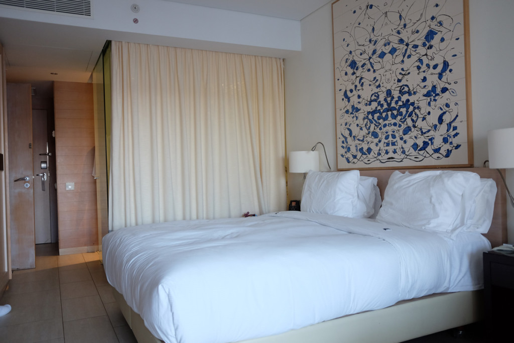 As strange as it sounds, a glass wall separated the bathroom from the bedroom creating an open bathroom concept (if you wanted privacy you could close a curtain in front of the glass wall), but like the rest of the hotel it was a stylish addition to your bedroom.