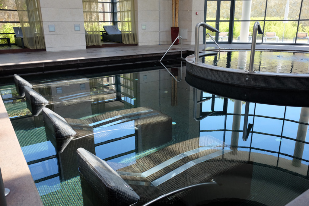 The spa is housed in a separate building directly opposite the hotel or via an underground passage which connects the spa to the hotel.