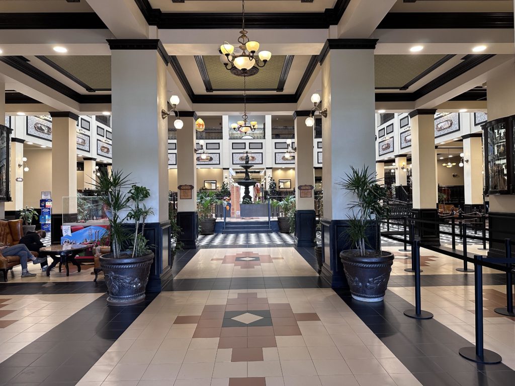 There are so many photo opportunities throughout Sullivan City which we loved from its railway station and steam train to the shop facades that are actually some of the hotel rooms which run through its main street. The centrepiece is city hall, a striking brick building where our room was located, it’s also home to the hotels main restaurant, gift shop, bar and lobby.