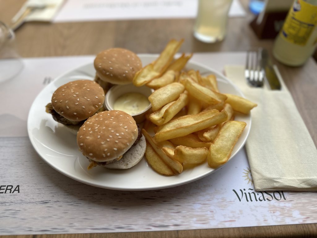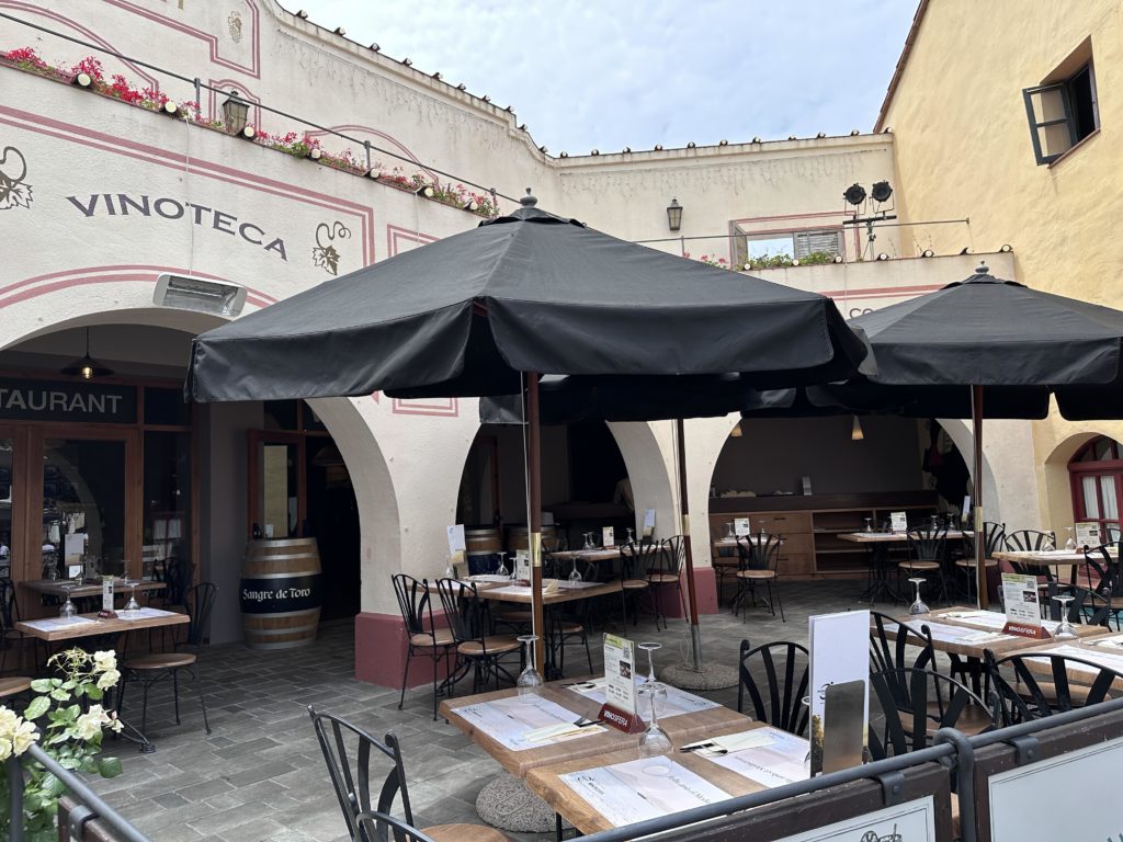 Many of the restaurants were closed but our favourite was Vinosfera Tapes, a beautiful tapas restaurant serving great food, excellent service and in a gorgeous setting in the Mediterranean section of the park. If you do go here, I highly recommend the patatas bravas and the 3 mini cheeseburger main.