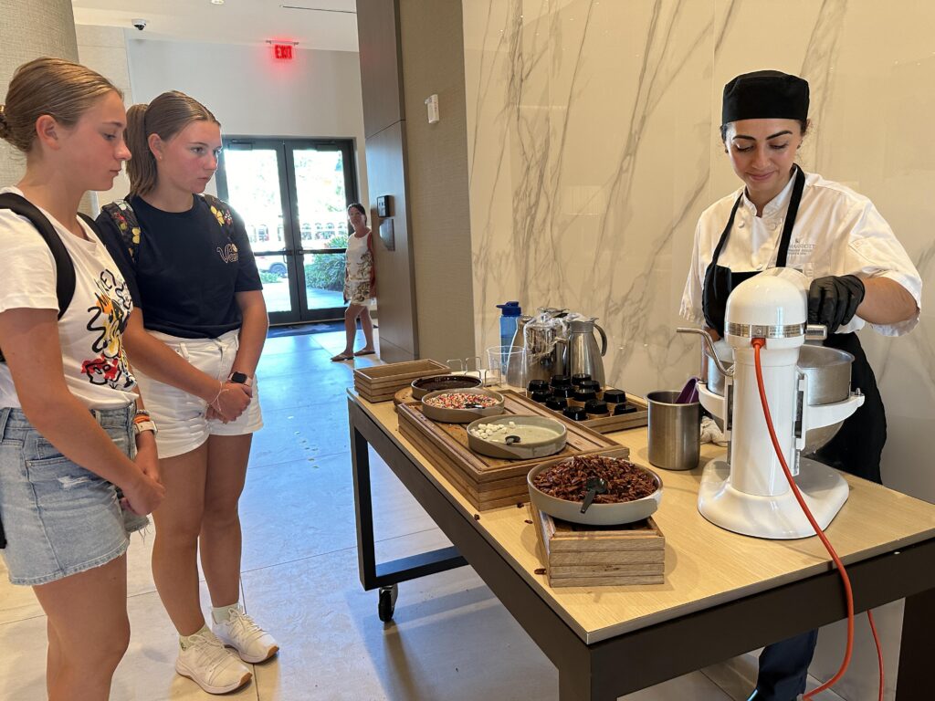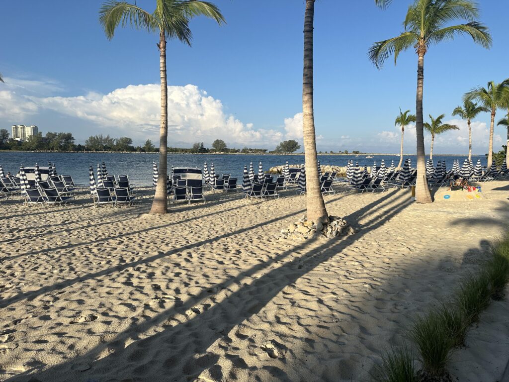 Beach access is no more than a 2-minute walk out of the back door of the lobby and like the pool, there were plenty of attendants to welcome us and set up our towels and seating in our chosen area of the beach. This narrow path leading to the beach was one of many places where you’ll want to stop for a photo break, as it’s lined with palm trees with views towards the ocean. The sunsets here offered some incredible lighting and memorable family photos. The waterfront firepits are also here, perfect for some sunset s’mores.