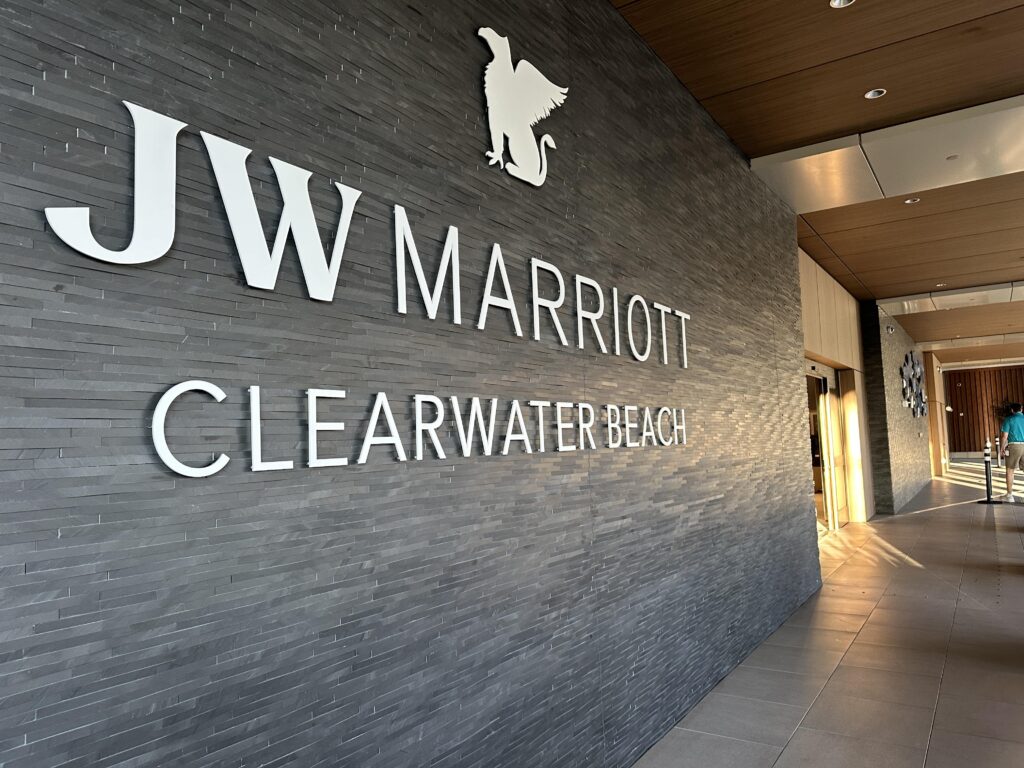 Upon arrival, you’re greeted by the modernist architecture of the JW Marriott Clearwater Beach, one of Florida’s newest hotels to open. We arrived by car from Orlando and there is no self–parking option here, only their valet service at $45 a night, which might seem a little steep, but parking is at a premium on the beachfront.