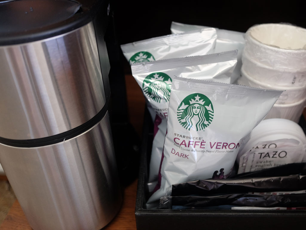Having a fully functional kitchen in our room especially with children was perfect.  Within the kitchen area we had a small granite island with bar stools, wine chiller and refrigerator.  There was plenty of cupboard space plus lots of Starbucks coffee and my personal favourite Tazo tea.