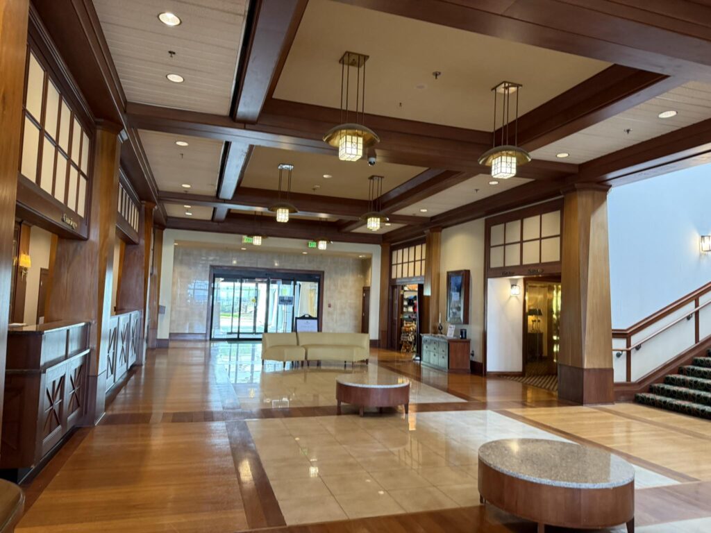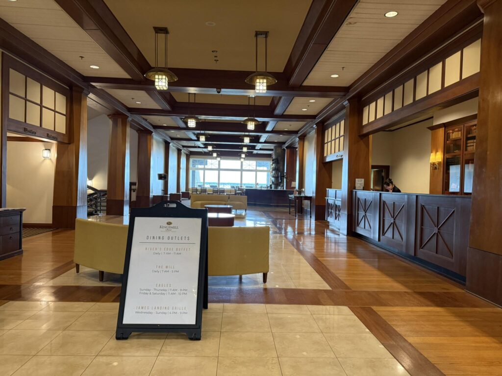 Check-in is at the main resort building, decorated with dark woods and colonial brass fixtures with views over the James River at the far end. In this building is a small store, large conference centre and River’s Edge Buffet, where we would enjoy breakfast during our stay.