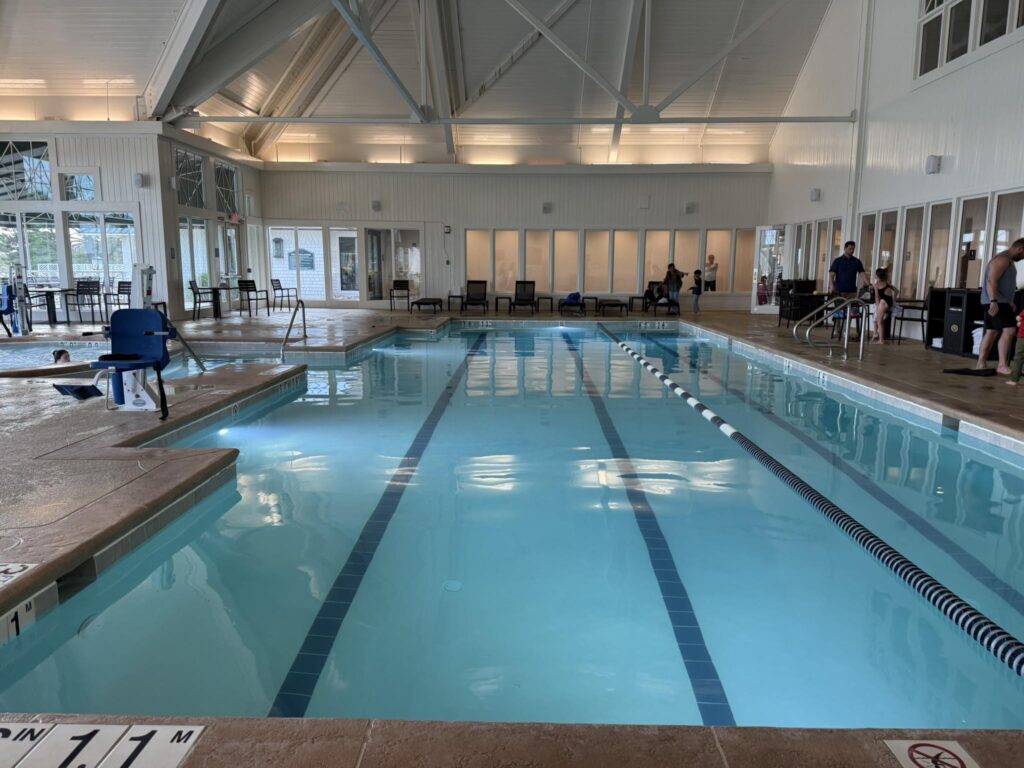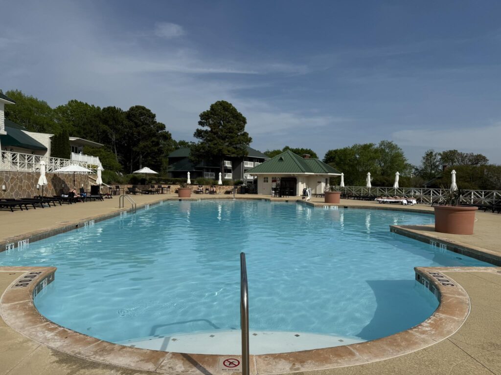 Although the outdoor pool was a little chilly given the time of year, there’s also a large and impressive indoor heated pool nearby for those who prefer a warmer dip. In peak season, Kingsmill’s outdoor pool complex really comes alive with waterslides and a lazy river at their River Pool complex.