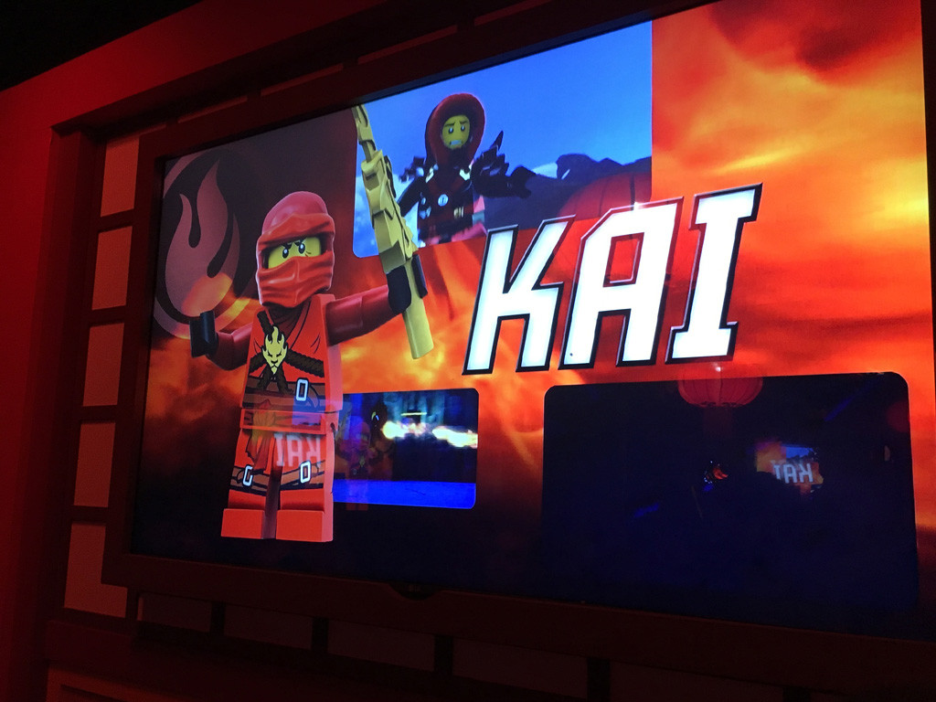 The pre-ride experience was quite enjoyable as we waited for our turn on the Ninjago ride. Several large tv screens showed us how to practice our Ninja moves ready for when we got on-board our 4-seater vehicle.