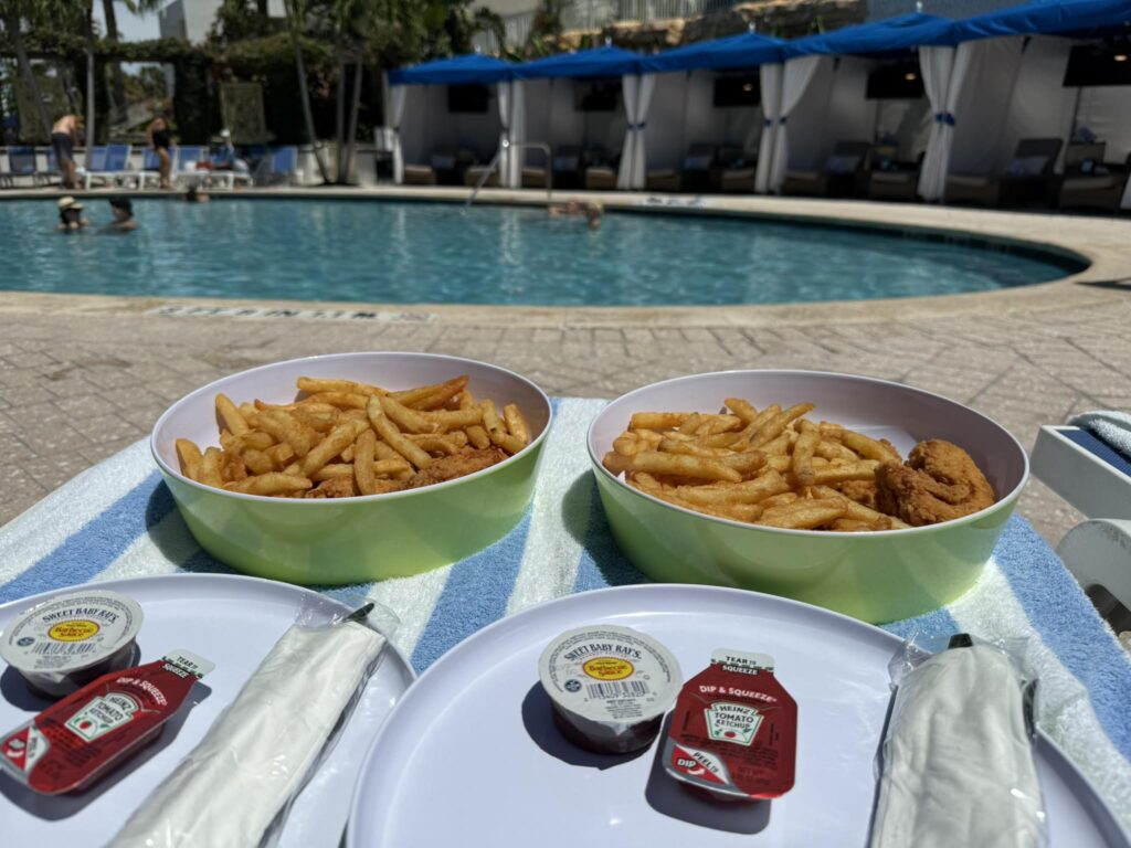 During our stay, we mainly ate lunch at the resort. Over Labor Day weekend there was a pizza oven set up by the pool, serving freshly made pizza which was excellent. The poolside menu also offered family-friendly options such as burgers, fries, and chicken tenders, which went down well with the girls.