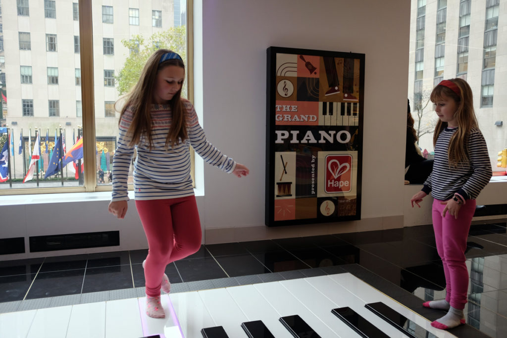 Play the giant piano during a visit to FAO Schwarz The world’s most famous toy shop FAO Schwarz has just reopened at Rockefeller Plaza and yes it has the infamous giant piano like in the Tom Hanks movie Big.