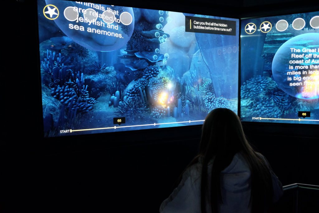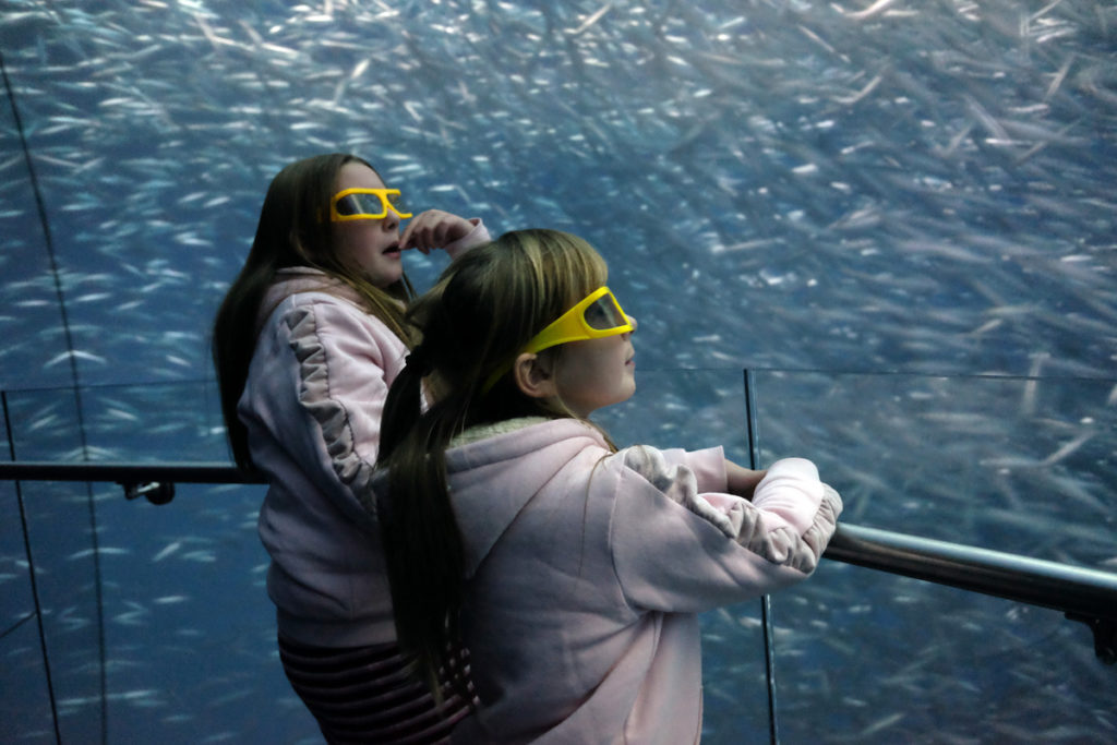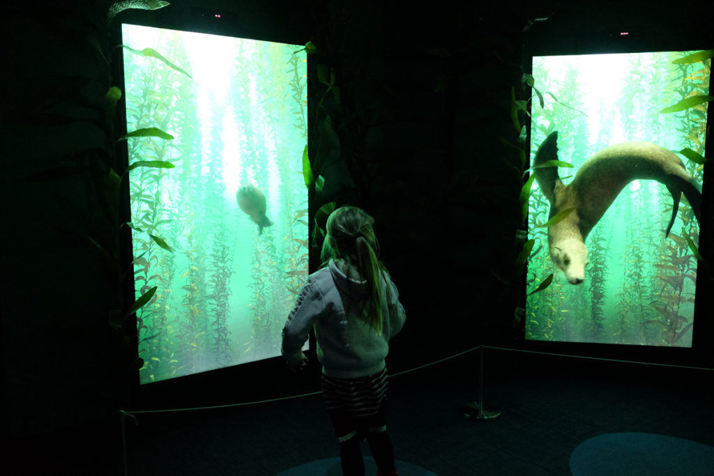 This was great fun and educational for the girls, as through a clever mix of digital technology, we experienced a fight between two huge Humboldt squid, a 50ft humpback whale passing over our heads and walking through a coral reef, all without getting wet.