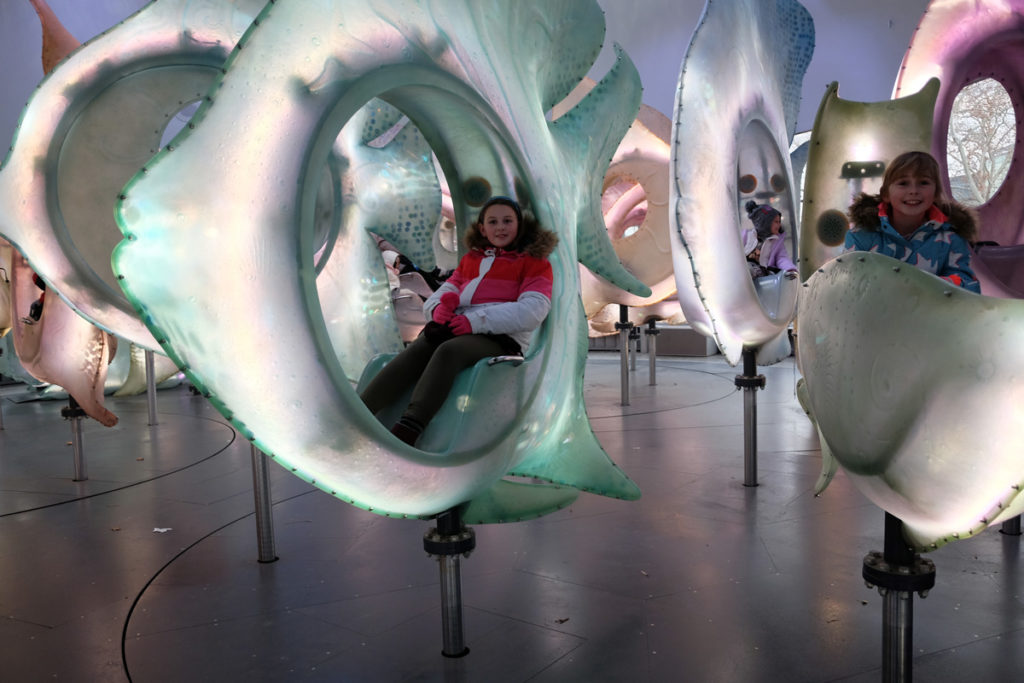 You sit on one of the 30 different iridescent fish that glide through a 360 degree aquatic adventure, which are all lit up with colour-changing LED lights – it will be a carousel like no other, and the kids will love it.