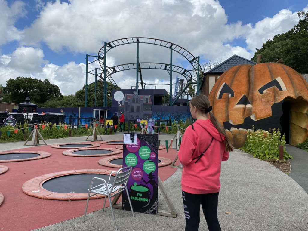 We ended the day at Spooky Street, which was really quiet so we could try out the Cauldron trampolines and spin on the Witches Brew teacups with no wait time.