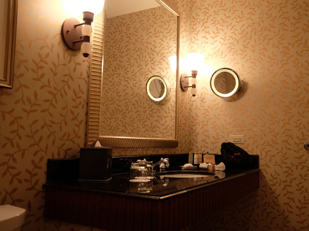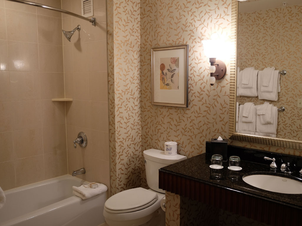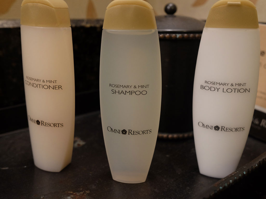 The sumptuous bathroom was well-equipped with a deep bathtub with shower, plush towels and bathrobes but strangely no slippers. There was a plentiful supply of in-house Omni rosemary and mint toiletries which were lovely.