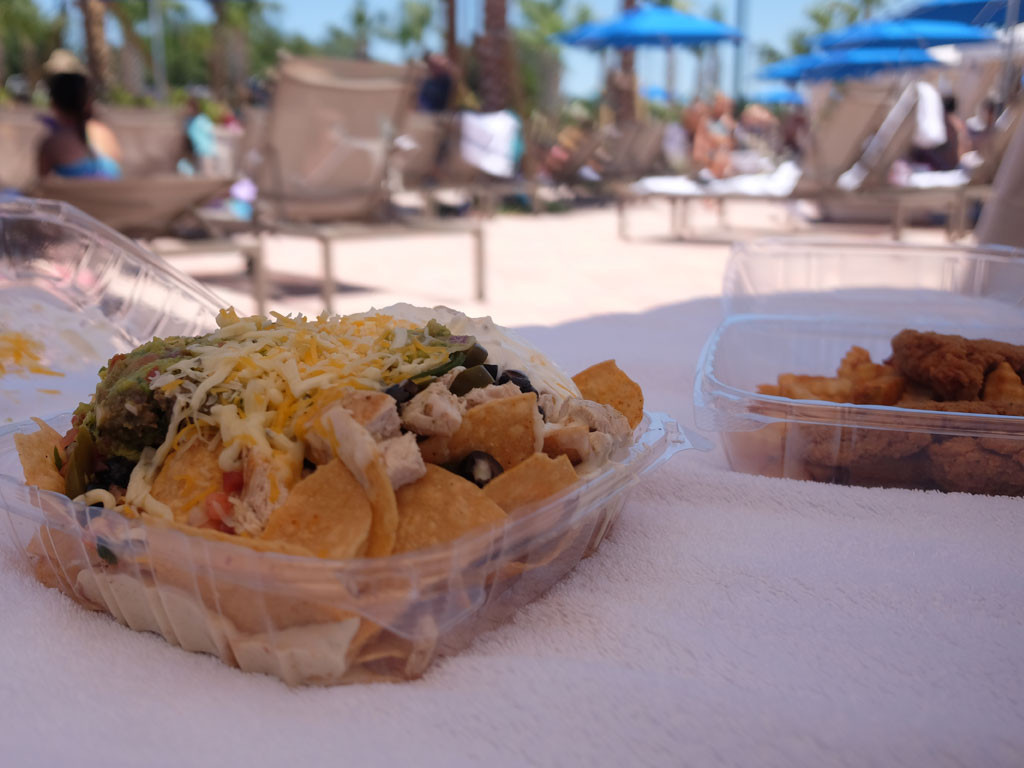 We enjoyed a delicious poolside lunch at our cabana and the girls were thrilled with their cool coloured ice drinks. After enjoying their chicken tenders and helping themselves to our chicken nachos, off they excitedly ran to enjoy more pool time.
