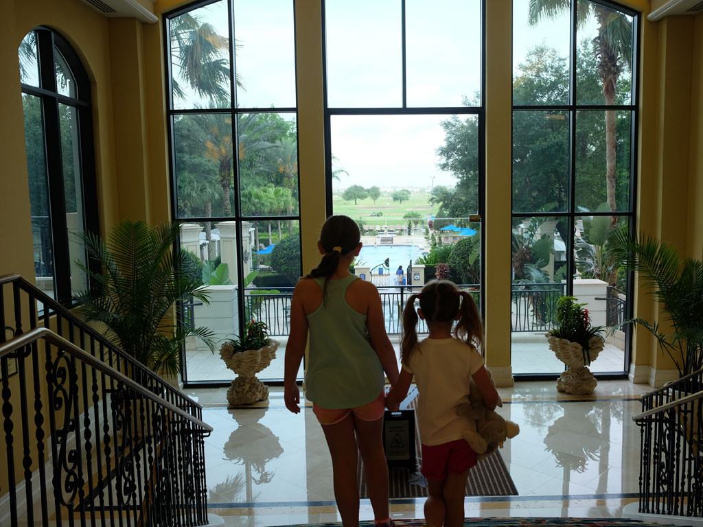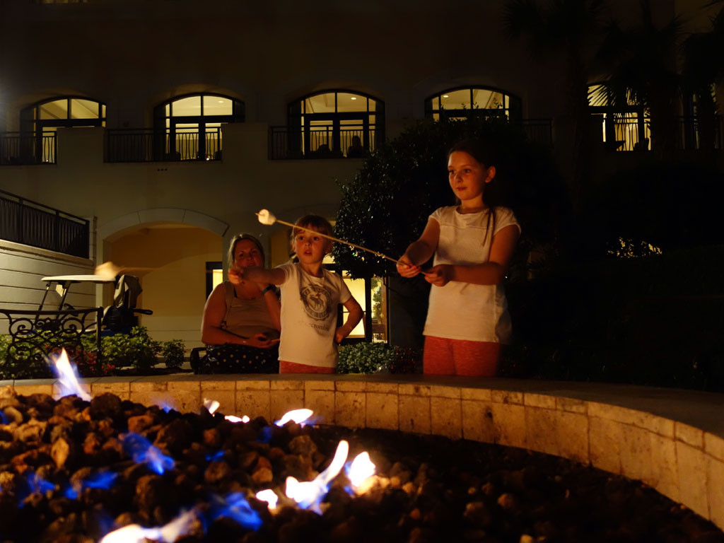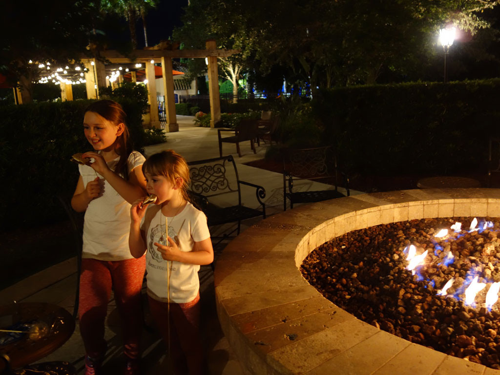 The view from our eighth floor room was breath-taking, overlooking the expansive golf course and the family and formal pool areas where the girls first spotted the s’mores at the fire pit.