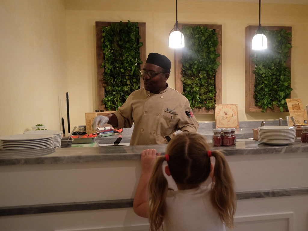 We tried to experience all of the restaurants during our stay starting at Trevi’s, an elegant Italian restaurant. What was really good about dining at Trevi’s with children was the fact that they had the opportunity to make their own pizza. They had so much fun making their own custom creation before it was whisked away by our friendly waiter to be cooked in the pizza oven.