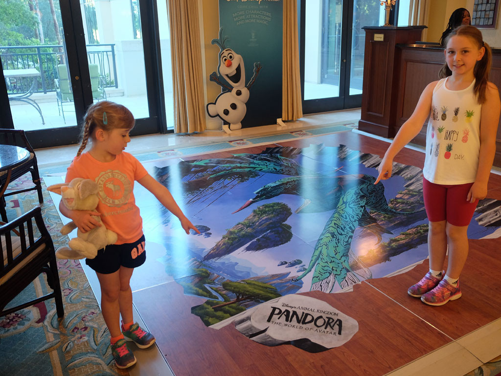The hotel it is just 6 miles away from the Walt Disney World Resort area, and was an easy drive into the parks. It was lovely to escape from the hustle and bustle of the theme park crowds to arrive back at such a relaxing environment each day. Even though the hotel is outside of Disney there were still lovely Disney touches at the hotel, such as a huge Pandora graphic that appeared on the floor of the lobby area one morning to celebrate the launch of Pandora the World of Avatar. If you are not driving the hotel offers complimentary dedicated shuttles included in your resort fee to the Disney Parks.
