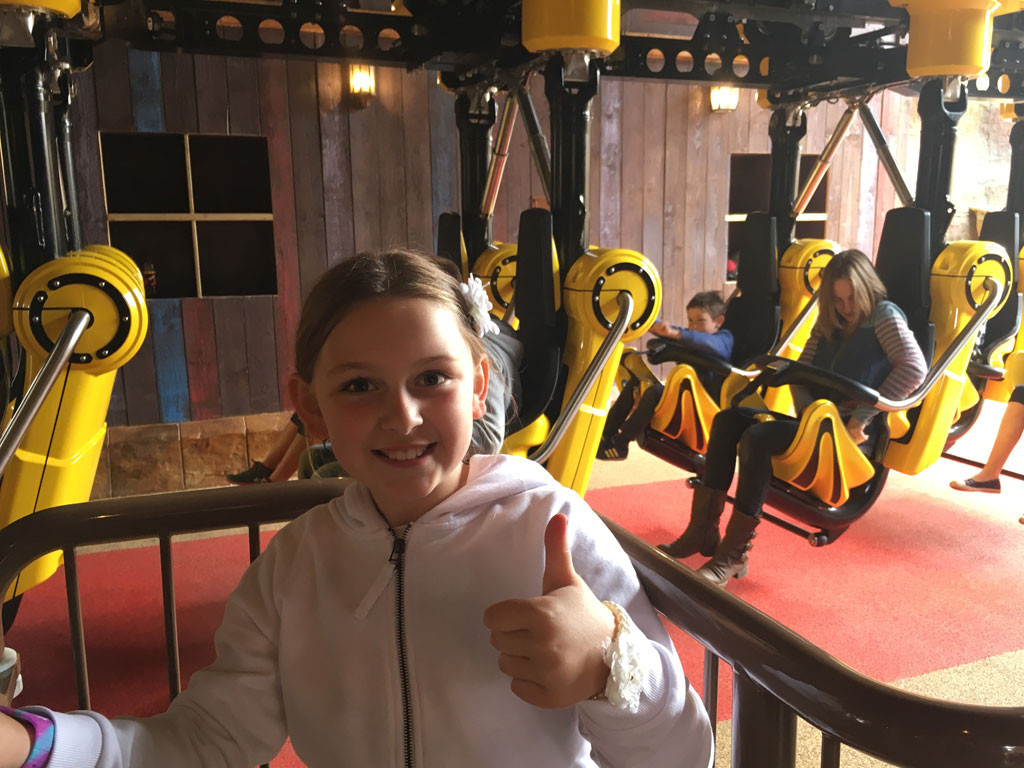 Other family rides and attractions at Paulton’s Park included a 4D cinema, tea cup ride, seal falls and a really fun swinging boat ride called Kontiki. The Viking boats, Holly thought was so much fun as you can see in the photo below.