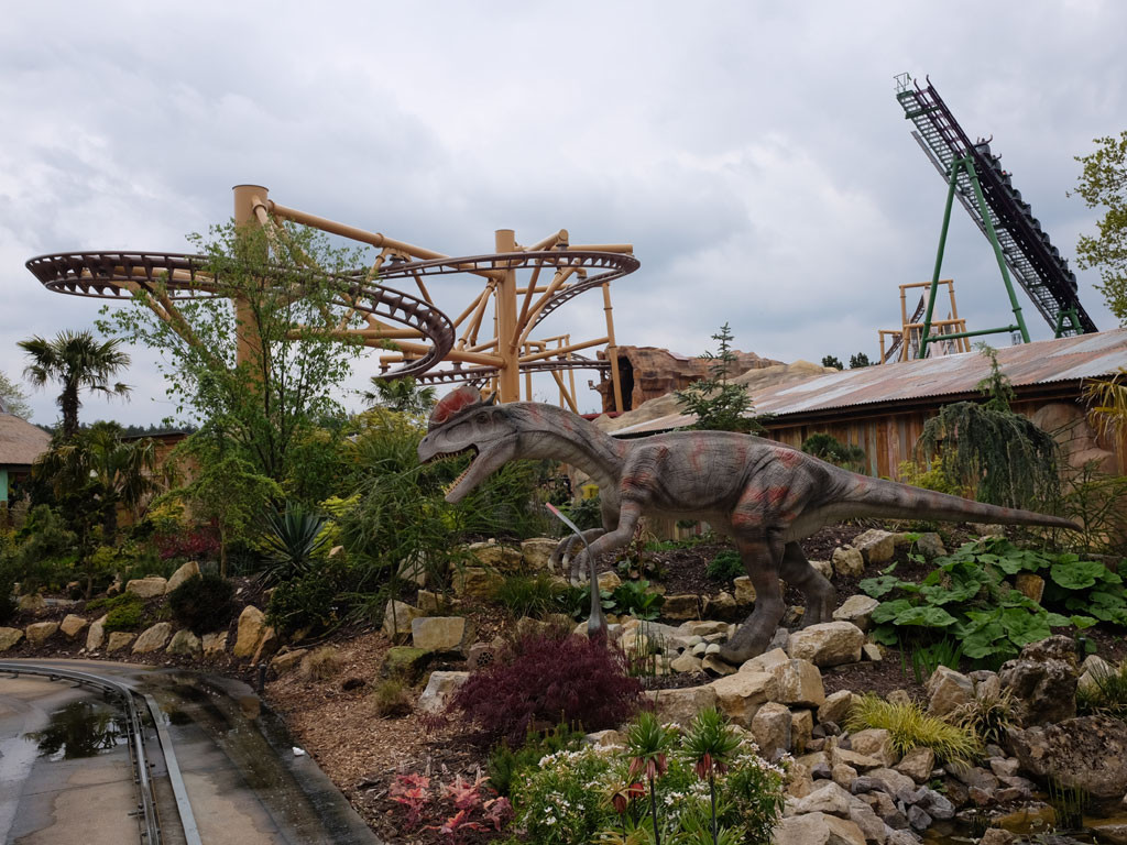 The Lost Kingdom is set over four acres, with excellent theming, with life-like animatronic dinosaurs. We were amazed as we walked through the main gate, it literally felt like you had been transported back 150 million years to Jurassic times.