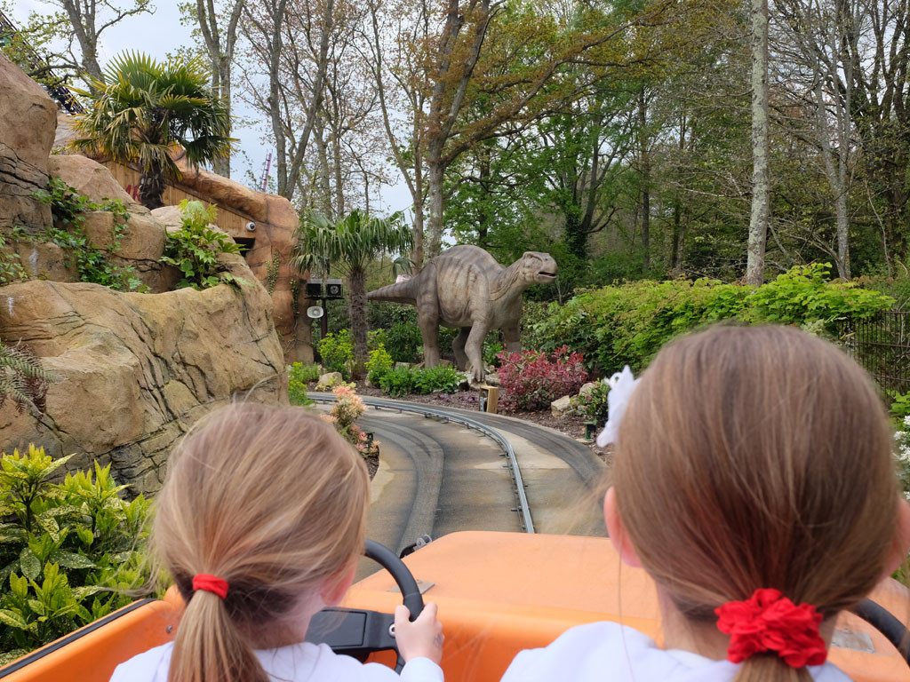 There is a slower coaster ride which both my daughters and I loved, called Dino Chase (previously The Flying Frog). It was a lovely ride for my six year old to experience, as the likes of the Flight of the Pterosaur and Velociraptor were a little too scary.