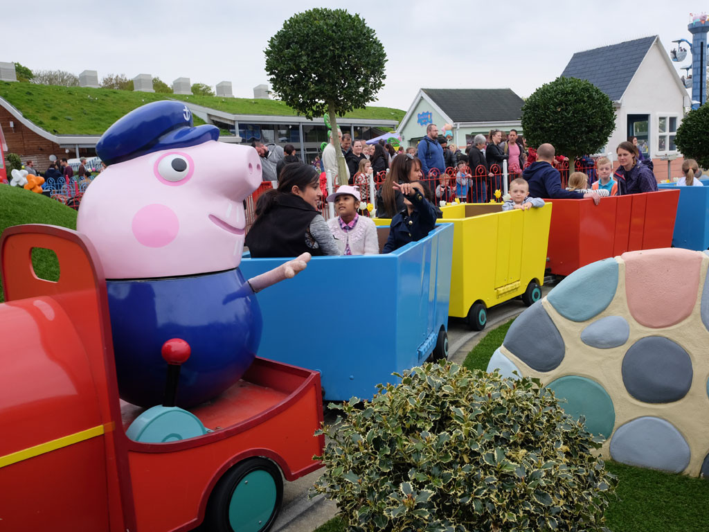 You can even drive Daddy Pig’s car, brave the heights on the Windy Castle or travel on Grandpa Pig’s Little Train, which comes complete with the theme music . “Grandpa’s little train goes Choo Choo Choo”.