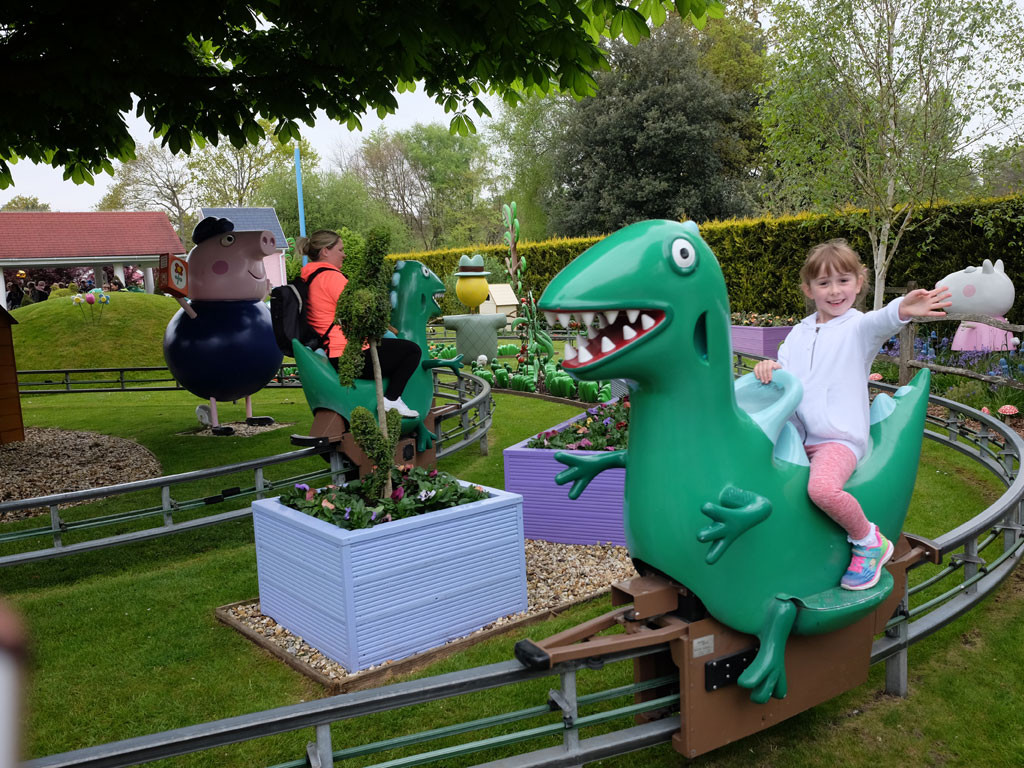 One of the favourite rides for the girls was riding on the back of George the Dinosaur as they met Peppa Pig’s friends and trotted past smoking volcanoes on their journey.