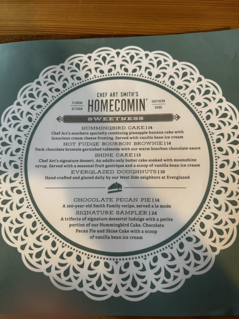 One of the restaurants that we were most looking forward to dining at was Chef Art Smith’s Homecomin’ restaurant.
