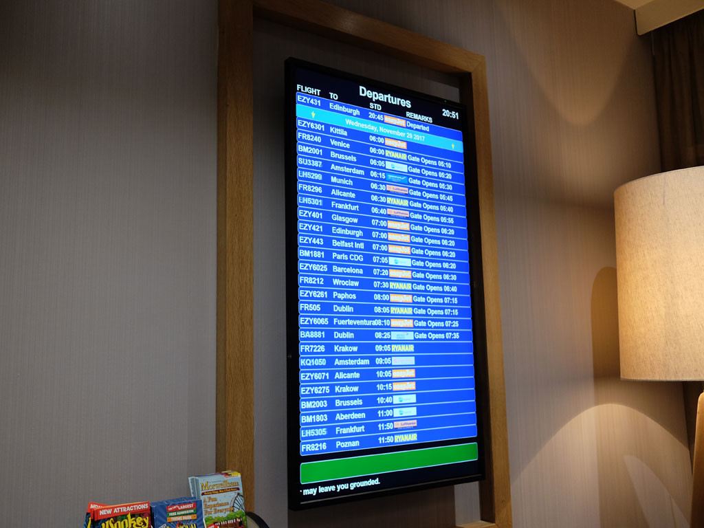 A nice feature in the hotel were the live flight information screens, so we could check the status of our plane before making the 5 minute walk to the terminal to check-in for our flight.