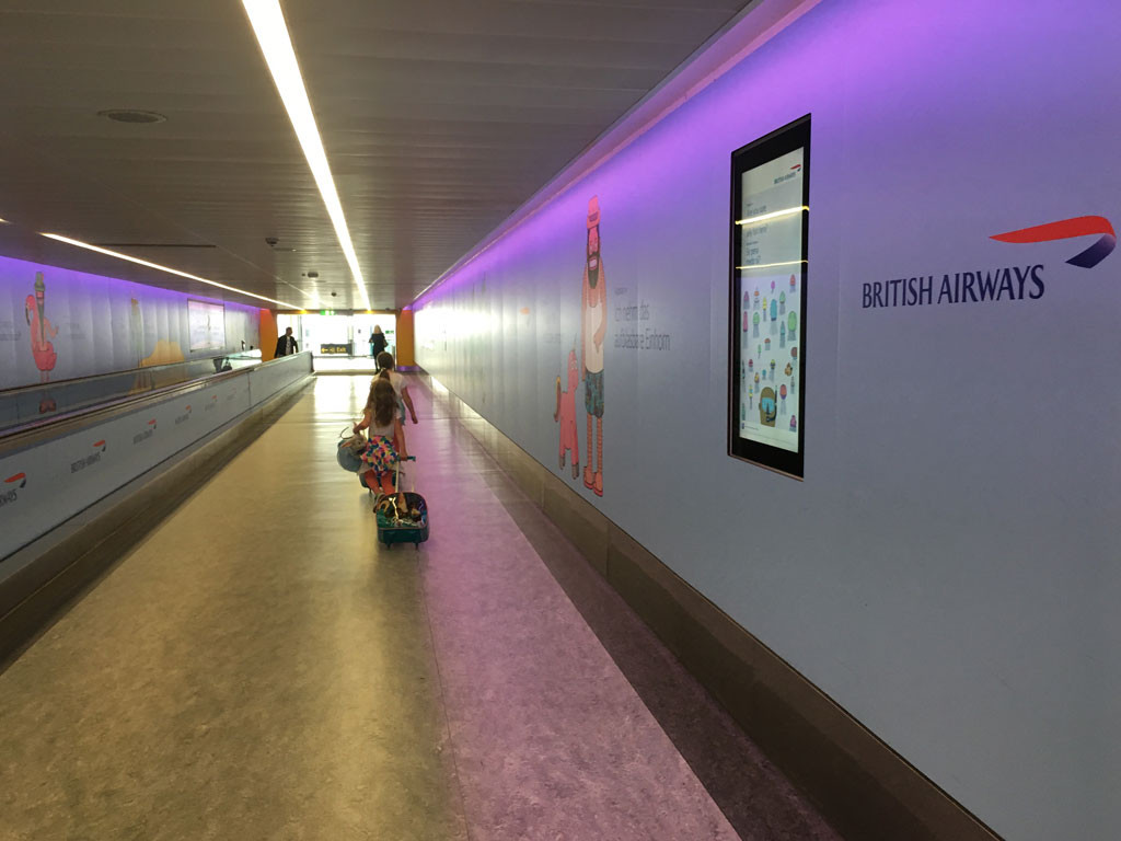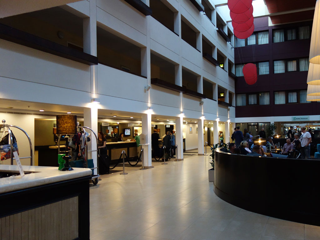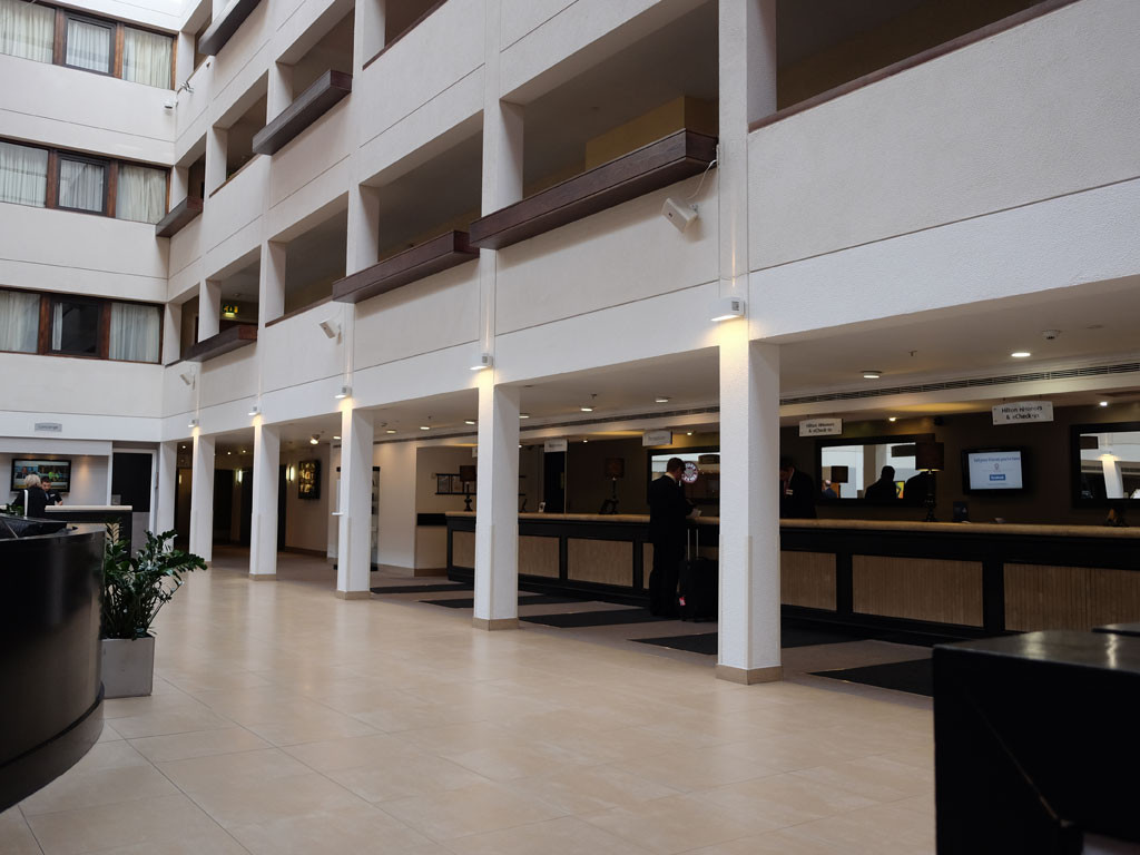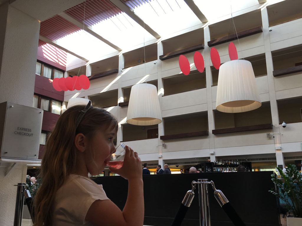 With six cases checked into our BA flight for the next morning we made our way to the Hilton Gatwick which is the only hotel connected to the South Terminal. After a pleasant five minute stroll from the terminal via covered walkways (with travelators which always helps with young children) we arrived at the large, bright and modern atrium lobby of the Hilton London Gatwick Hotel.