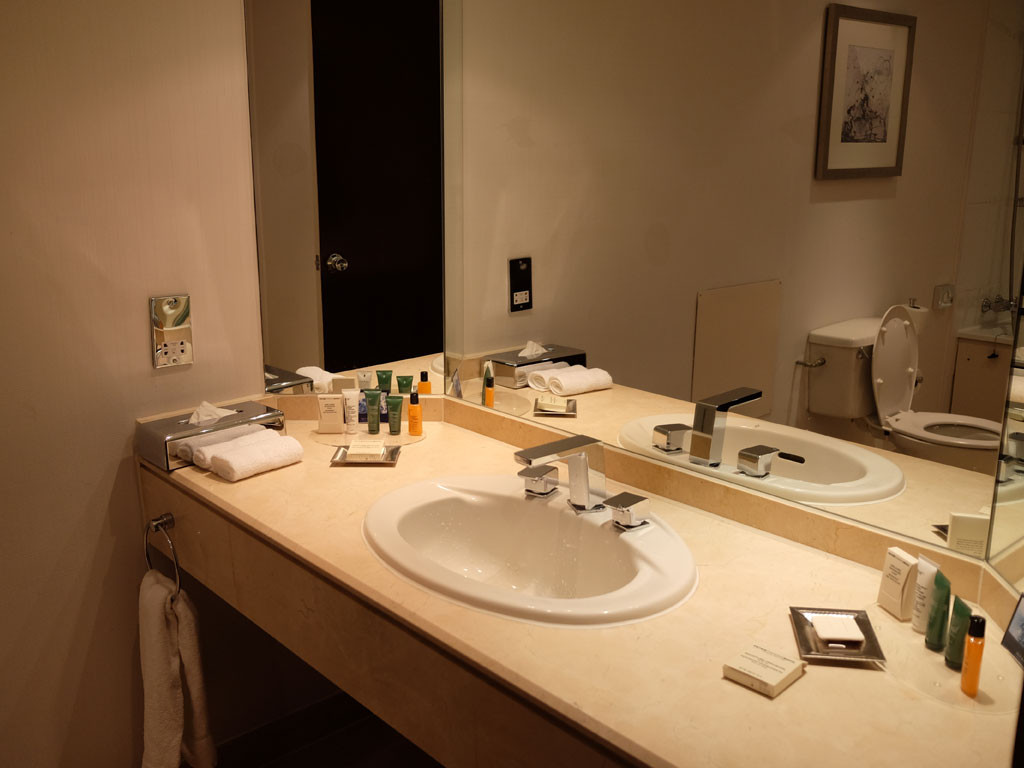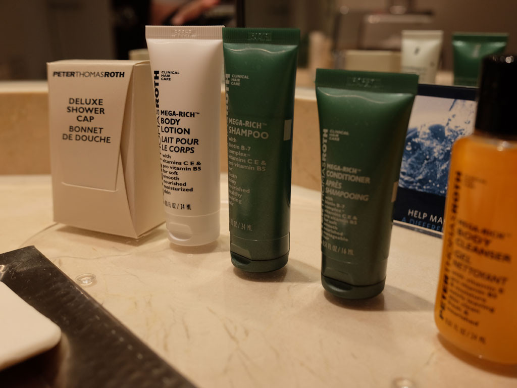 The spacious bathrooms were modern, with a shower over a bath, but had no separate shower. There was lots of complementary Hilton-standard Peter Thomas Roth toiletries.
