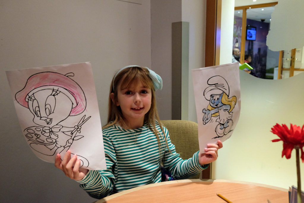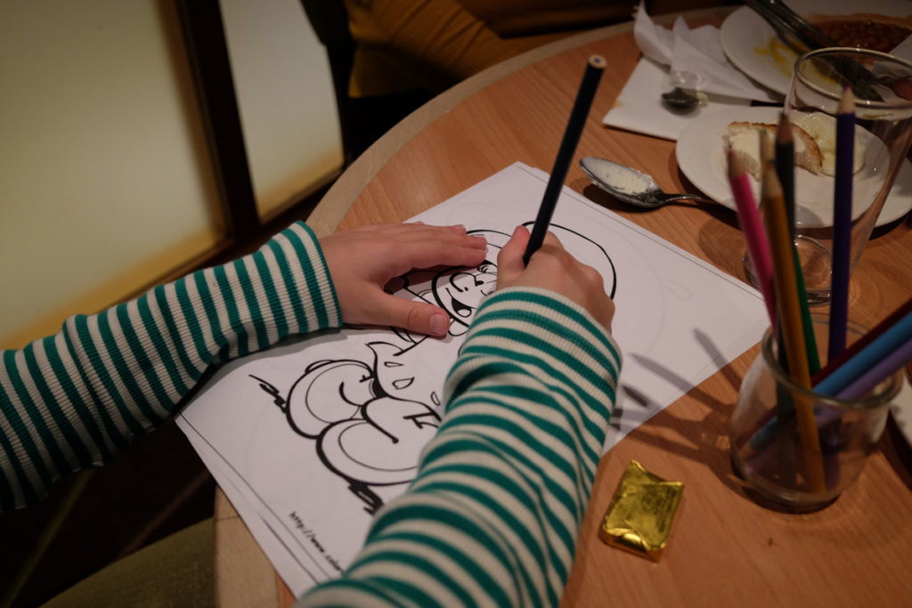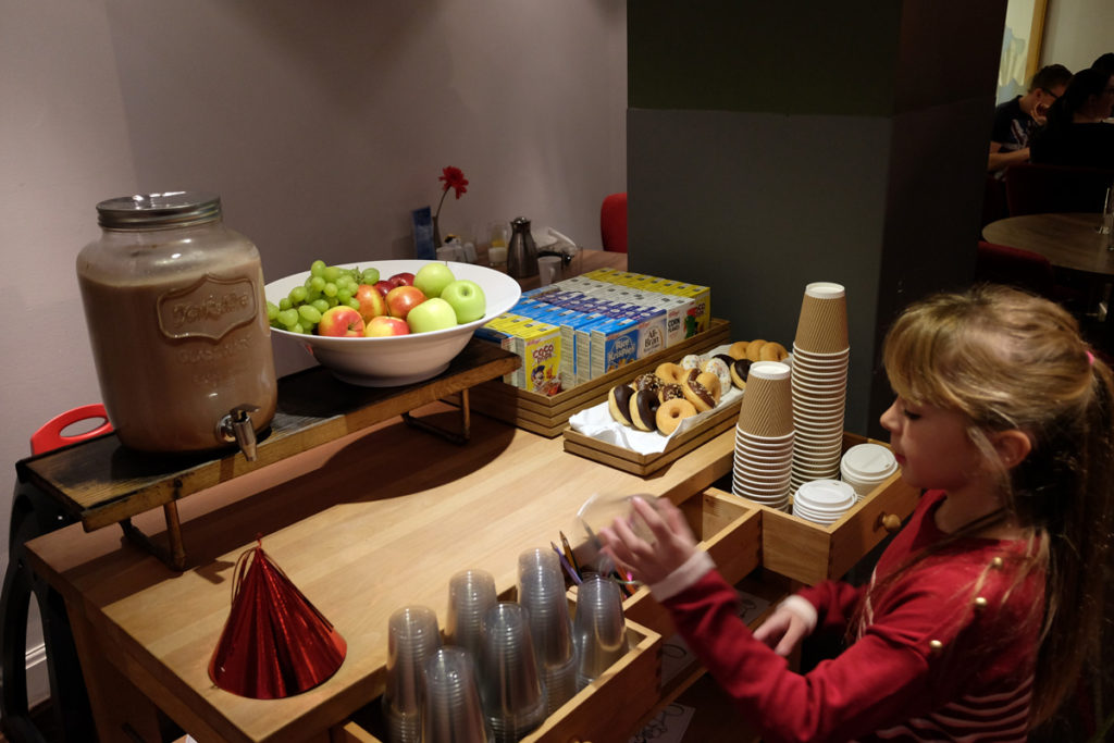 They have their own breakfast kid’s corner featuring cereals, fruit and a highlight for the girls were the iced doughnuts. The colouring sheets and crayons were also a hit with Holly, keeping her entertained during breakfast.